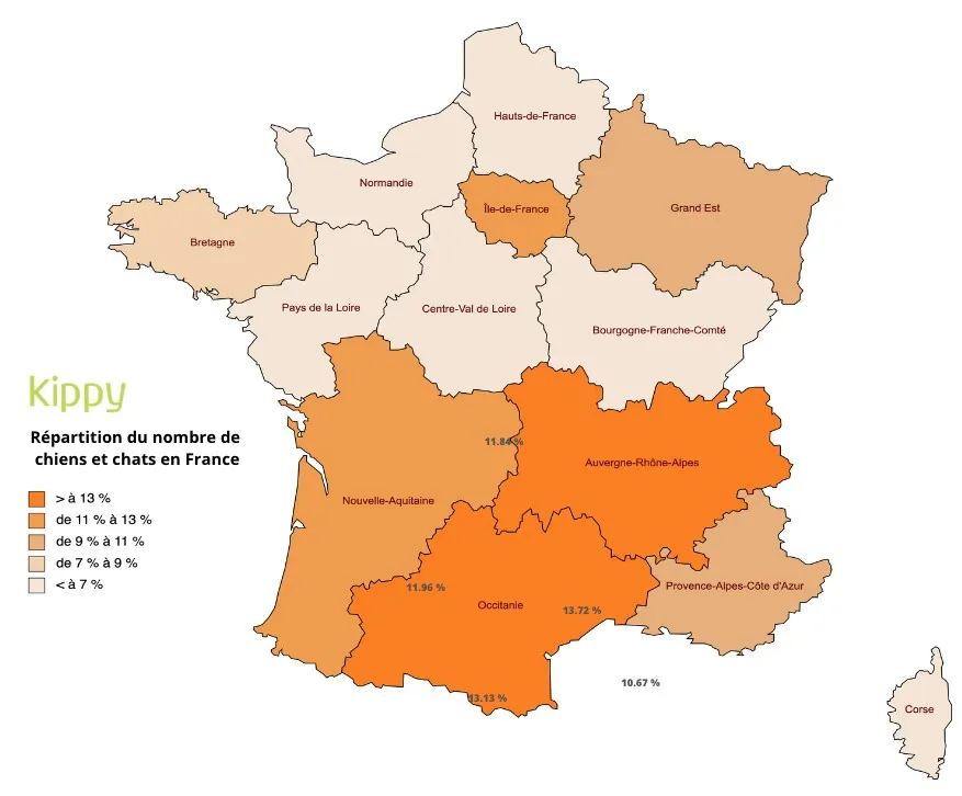 La passion des Français pour les animaux est indéniable. Les chiffres sont là pour le prouver, avec pas moins de 15,1 millions de chats et 7,5 millions de chiens vivant dans les foyers français. C'est dans ce contexte que la start-up Kippy, spécialisée dans le bien-être animal grâce à son traceur GPS et son moniteur d'activité, a mené une enquête pour déterminer les régions françaises où les animaux de compagnie sont les plus populaires.