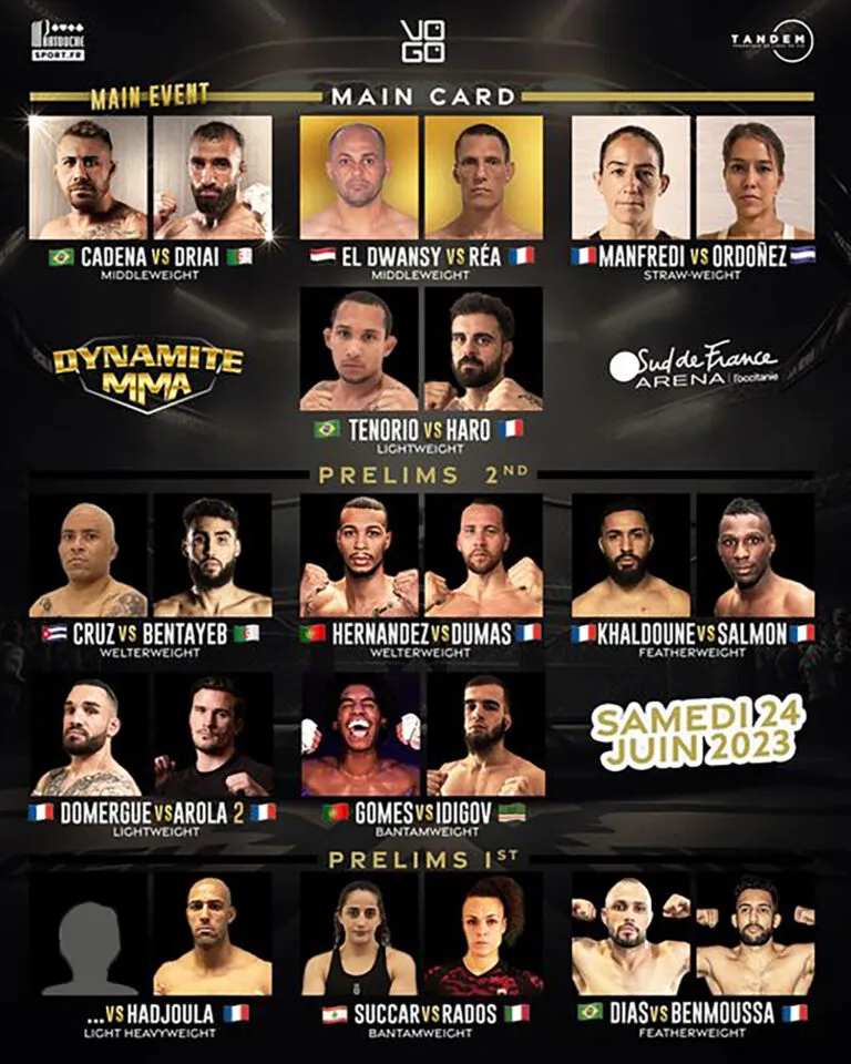 « Dynamite championship MMA » débarque à l’Arena Sud de France, avec au programme, de nombreux combattants hommes et femmes dans une ambiance survoltée « à l’Américaine ». Un événement en partenariat avec RTS.