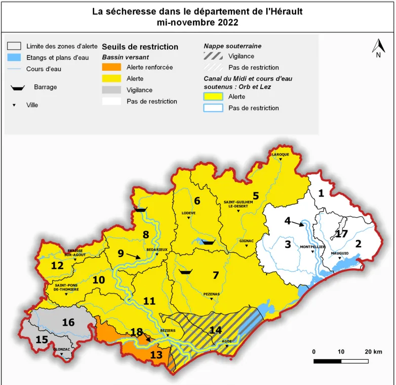 Les détails, les restrictions des usages de l’eau zone par zone... sur le site internet de la préfecture de l’Hérault.